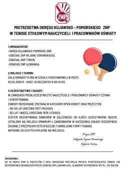 Mistrzostw Okręgu Kujawsko-Pomorskiego w Tenisie Stołowym Nauczycieli i Pracowników Oświaty – 2 kwietnia 2026
